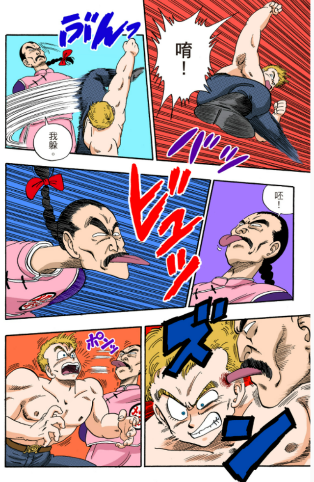 动画版则是加多了龟仙东说念主在脱了一稔后忽然爆出肌肉的片断,不错解释为龟仙东说念主使用了肌肉景况勉强天津饭,然则因为膂力不支,逐步趋于下风,解释了这个阶段的天津饭确乎比龟仙东说念主青出于蓝。