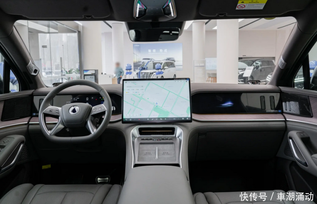 步入腾势N9内,中控台和门板处搭配木纹饰板,营造出温馨、优雅的氛围,尽显豪华质感。双环抱式座舱策画将科技与优雅竣工和会,打造出较为浩荡的环绕式空间,再加上总共内饰的建立,让总共内饰愈发赏心好看。还有超大天幕玻璃带来的三排天外视线,通透亮堂就像是在阳光房一般。