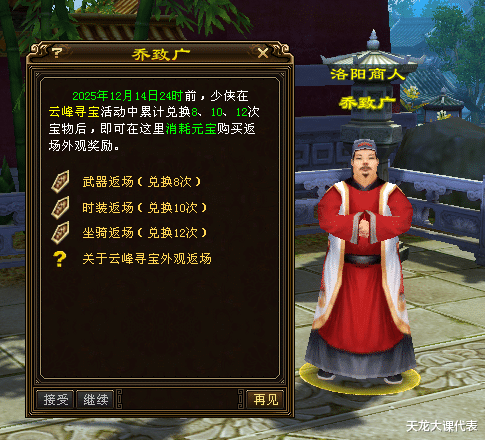 相同也更新了一些绝版外不雅的返场活动,执续到12月14号下周日。有一定要求,隔离需要干预爬山活动兑换8、10、12次才智参与购买。