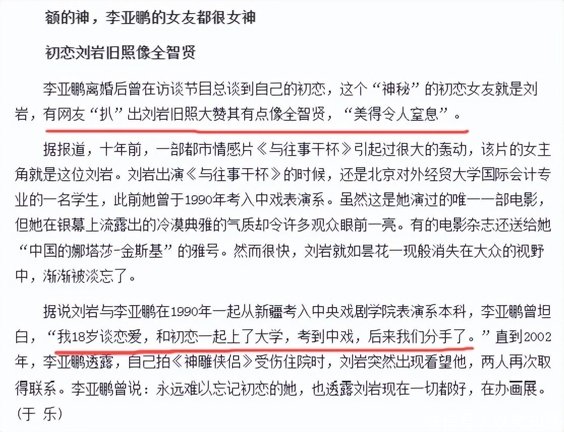 从瞿颖到周迅再到王菲,李亚鹏的前任个个都是文娱圈响当当的东说念主物。即便初恋刘岩名气稍逊,亦然实打实的高颜值才女。