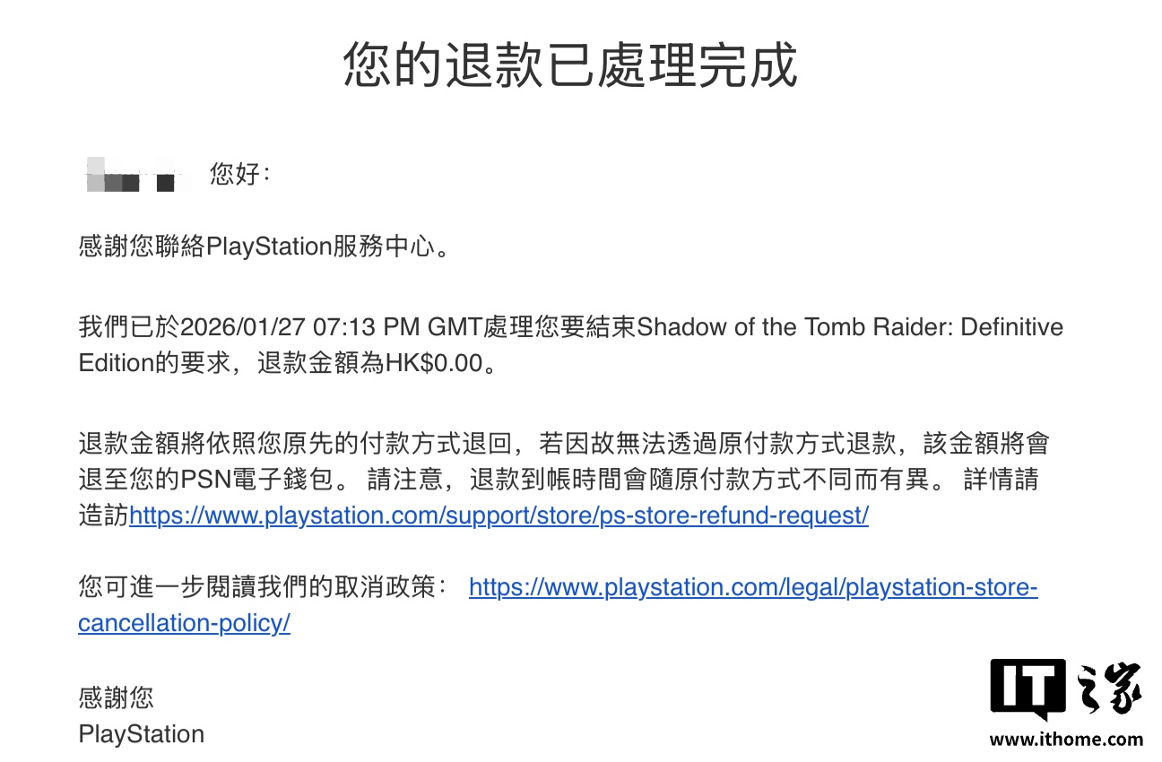 IT之家 1 月 28 日音问,索尼 PlayStation 亚洲区在客岁 12 月曾顷然出现一个时刻缝隙,多半用户藉此免费领到了原价 299 港币(IT之家注:现汇率约合 267.1 元东谈主民币)的《古墓丽影:阴影 终极版》。